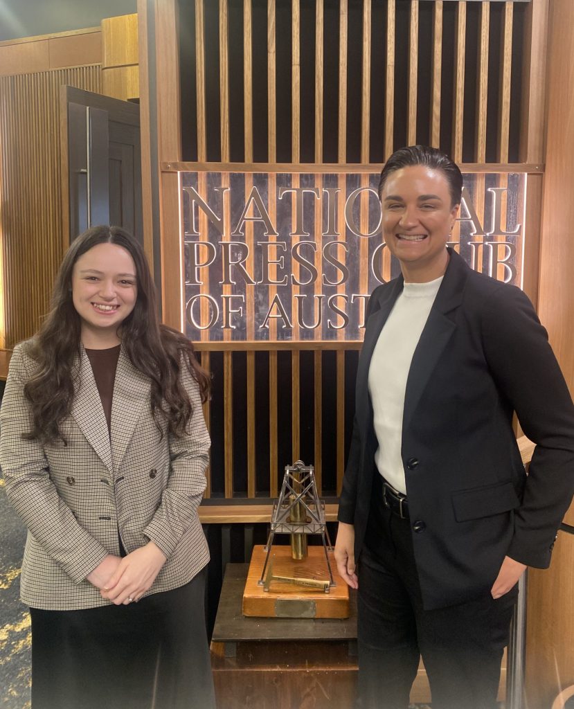 Picture: Sophie Cusworth at the National Press Club with Summah McKinnon, PWDA