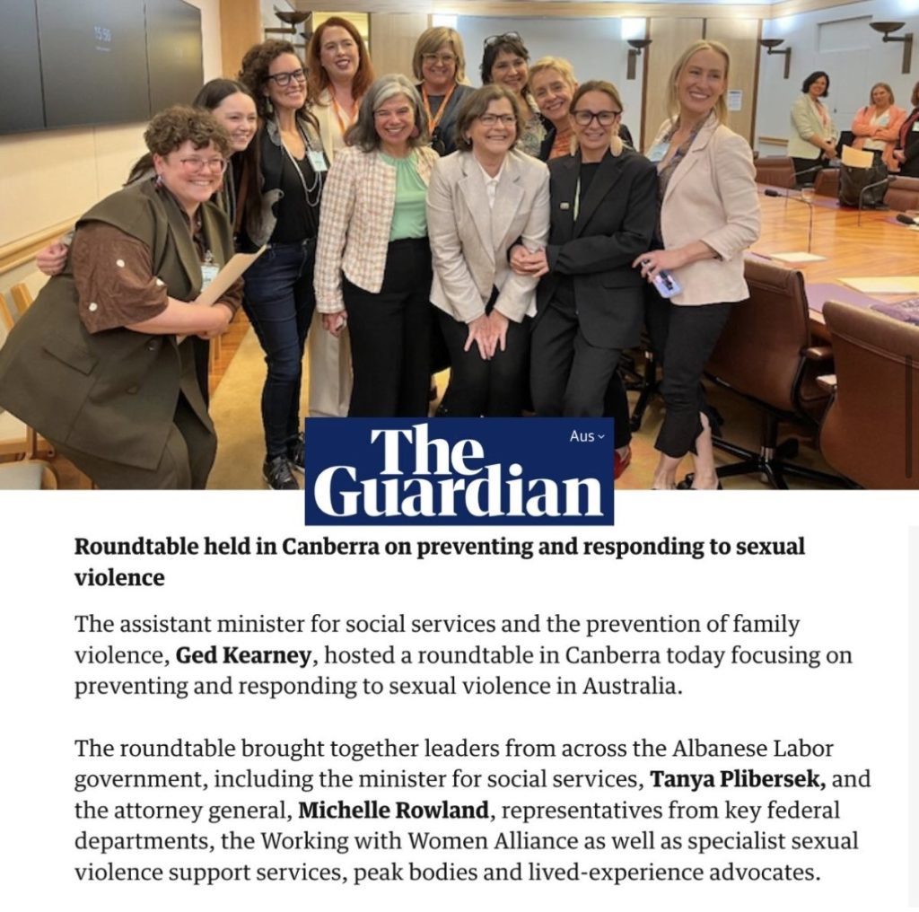 Earlier this month, CEO Sophie Cusworth attended Parliament House for a national roundtable on sexual violence, hosted by the Hon. Tanya Plibersek (Minister for Social Services), the Hon. Ged Kearney (Assistant Minister for the Prevention of Family Violence), and the Working with Women Alliance.