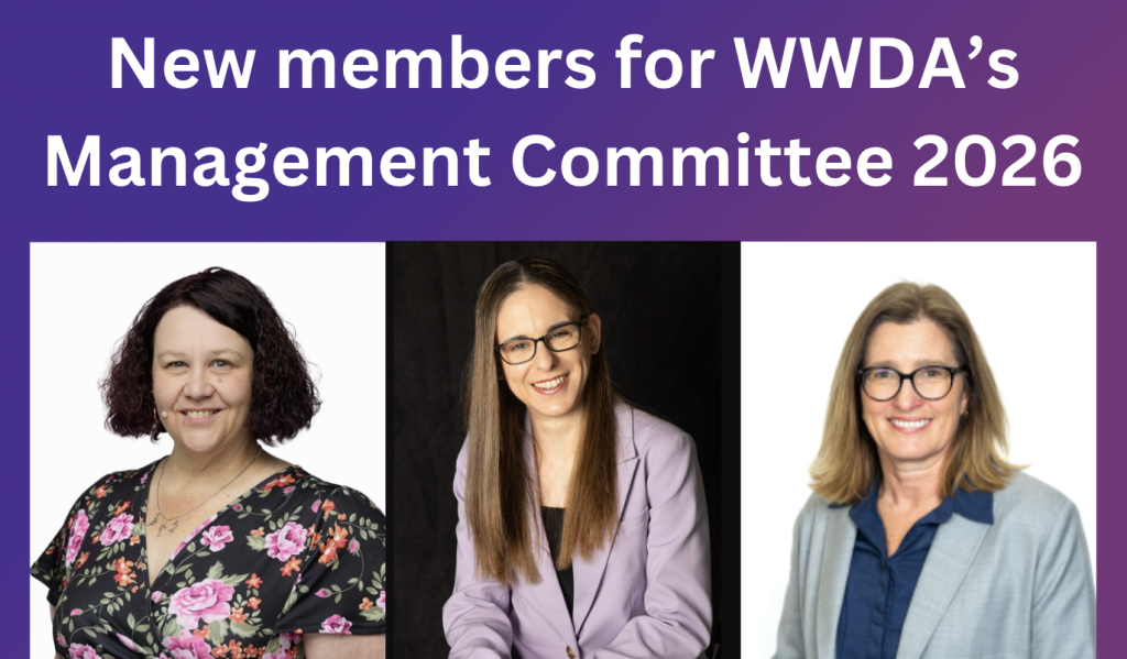 We also congratulate Jodie Haigh on her appointment as Board President, alongside Dr Samantha Neylon as Secretary. We thank them for their commitment to WWDA’s strategic direction and ongoing advocacy.