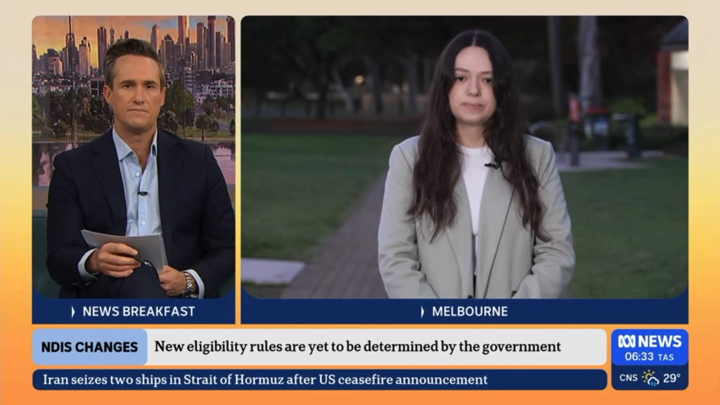 On 23 April 2026, Sophie Cusworth joined ABC News Breakfast to respond to the proposed changes to the NDIS. WWDA advocate for reforms to be developed with people with disability and to protect the supports people rely on every day.